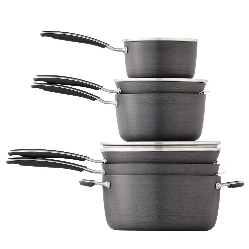 With a neat, easy-to-store stacking design, this 10-piece cookware set from Food Network is a must-have in every busy kitchen.