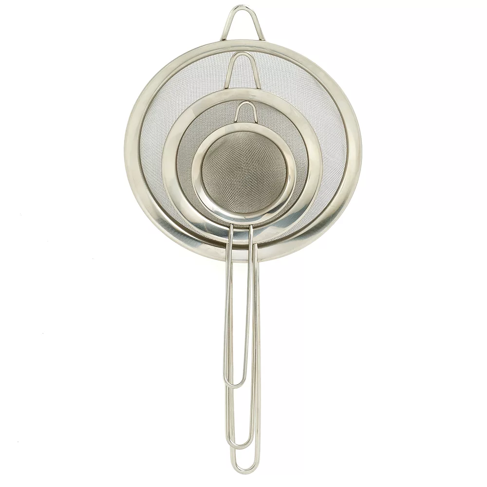 - Coarse and fine mesh construction strains anything from sauces and stocks to powdered sugar and cocoa.