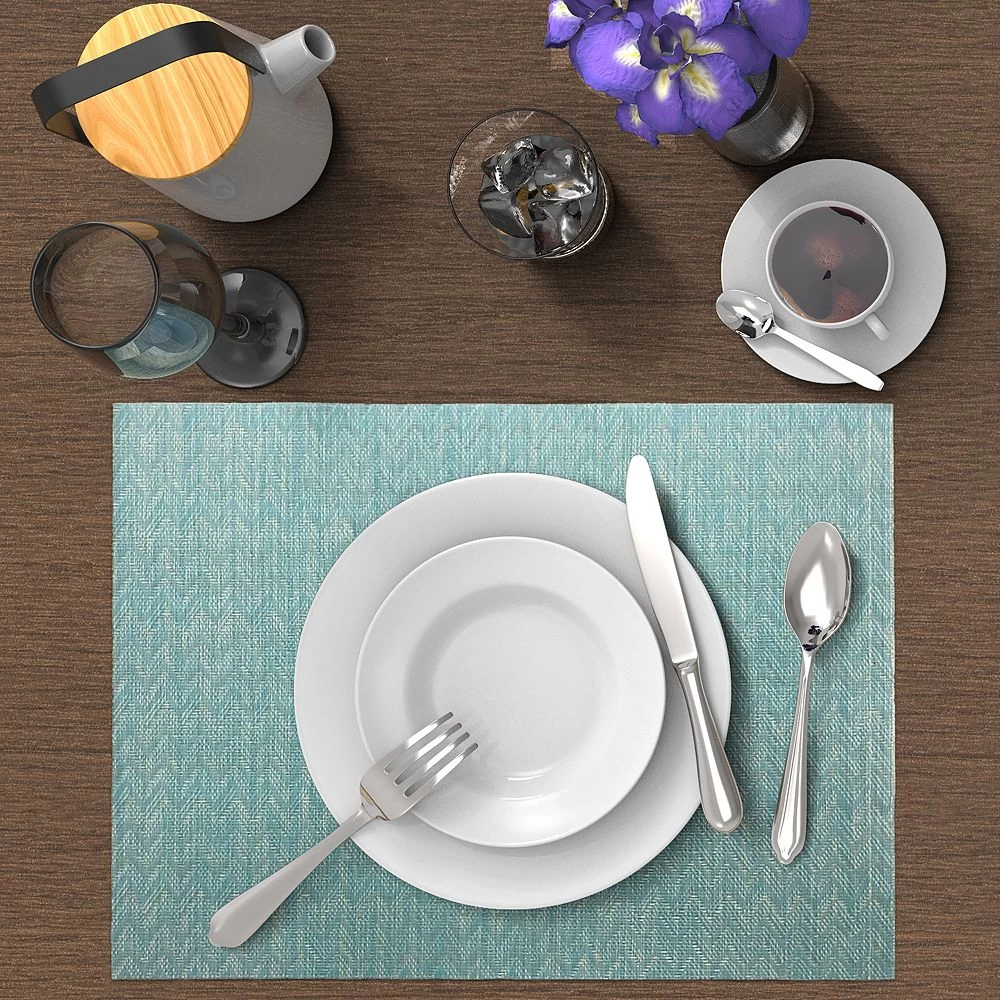 Give the dining table a new look with this Food Network blue chevron vinyl placemat.
