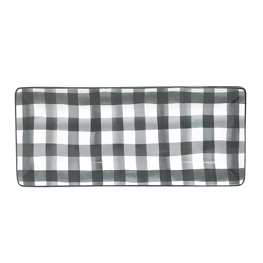 Serve up sweet treats or hors d’oeuvres on this black and white buffalo check tray from Food Network.