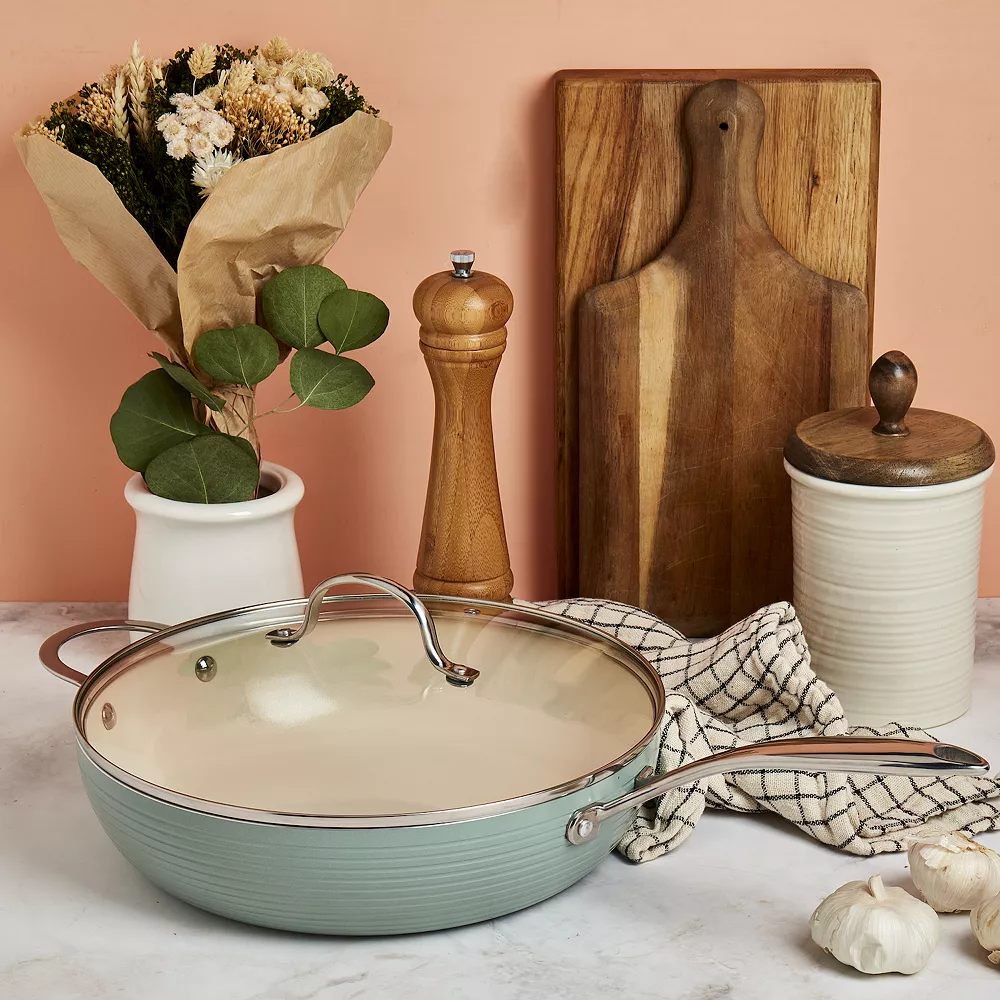 Give your cookware collection a modern overhaul with this Food Network Farmstead deep skillet.