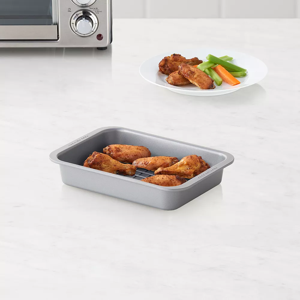 Outfit your toaster oven with this handy cake pan and broiler rack set by Food Network.